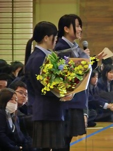 | 生徒代表挨拶 | 「これを機会にもっと日本の伝統音楽に触れていきたい」と、とても嬉しいお言葉をいただきました。 | |