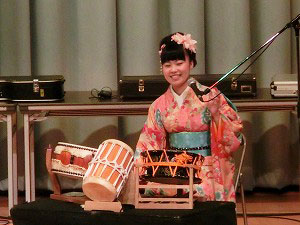 | 和楽器チャレンジコーナー。 | 撥の持ち方や、姿勢を丁寧に指導します。 | |