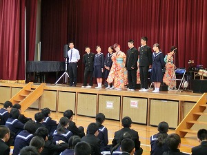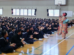 | 大人しい生徒さんが多いとの事でしたが、一曲ごとに大きな拍手をいただきました。 | ||