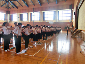 | 生徒さんが静かに体育館に入ってこられました。 | ||