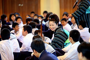 | そばで聴けるのがスクールコンサートの楽しさ! | マイクを向けられてドキドキ・・ | |