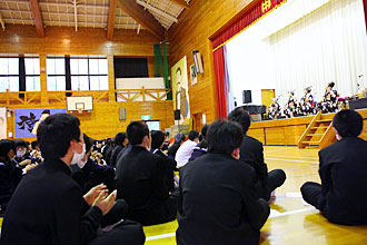 由緒ある飫肥ならではの今日のスクールコンサート。 「希望と理想 高くもち 学ぶ我らに光あれ」 すがすがしい気持ちにさせてくれた飫肥中学校の皆さんとの、素晴らしい出会いの一日でした。 |