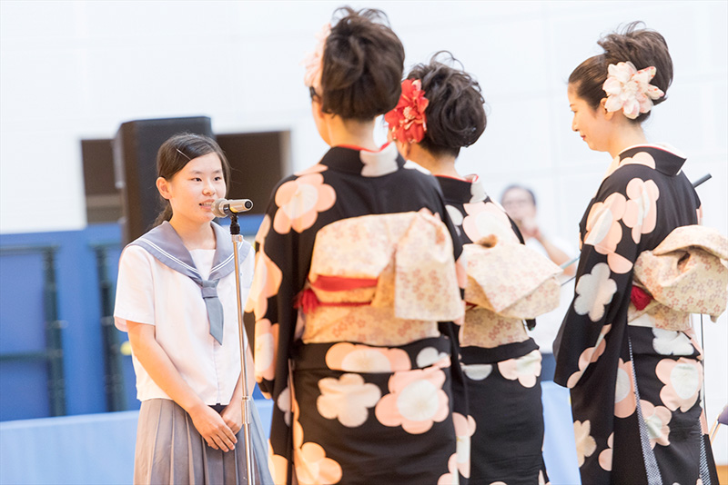 チャレンジ・ザ・和楽器のコーナーでは、各学校2名ずつと、鈴を1名体験してもらいました。