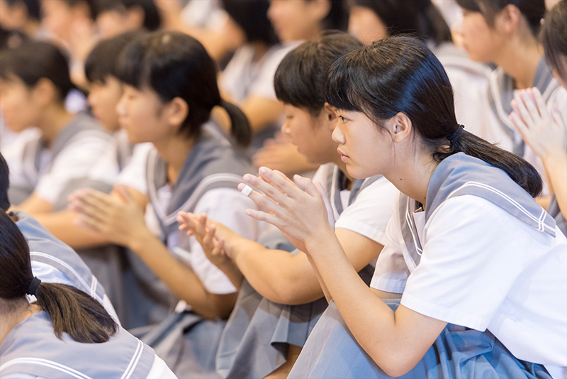 真剣に演奏を聴く生徒の皆さん。