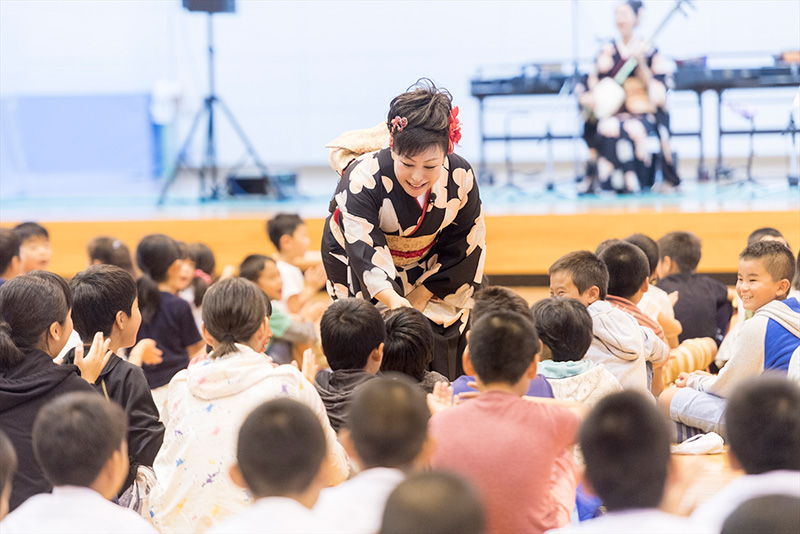 民謡をしていたという児童の方から、宮崎の民謡を聞きたいとリクエストをいただき「刈干切唄」を急遽披露しました。
