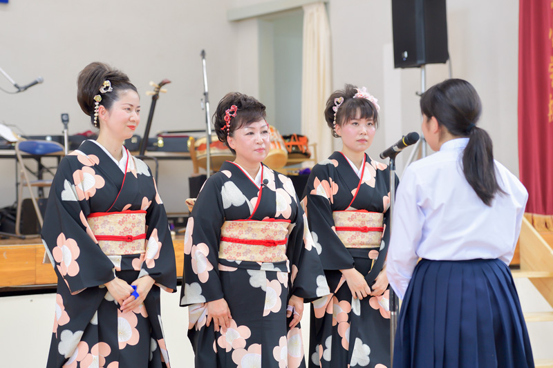 幕が開くと、児童生徒の皆さん、近隣の園児、地域の皆様が津軽三味線の演奏に釘付けになっていました。