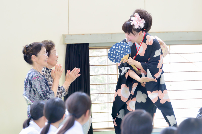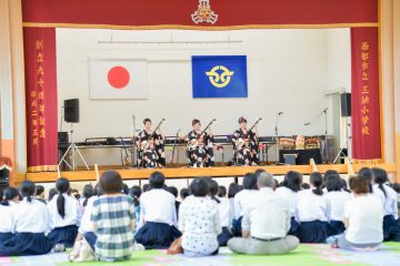 • 学校と地域を結ぶコンサート in 西都三味線を通じて児童生徒の皆さんと会話も弾みます。