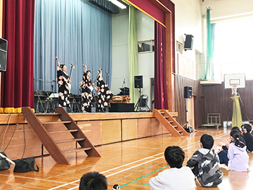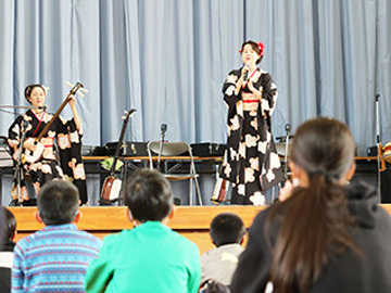 児童の皆さんは初めて聴く生の津軽三味線の演奏に少し緊張した様子でしたが、演奏が終わると大きな拍手を送ってくれました。