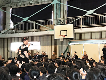 村上三絃道の演奏の後には、各学年の発表もあるため、演奏時間はいつもより30分短い1時間のスクールコンサートとなりました。