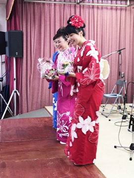 子ども達の他にも先生方、自治会の皆さん、長崎病院に入院中の卒業生など約100名が会場いっぱいで私達を迎えて下さいました。