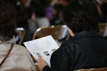 パンフレットに目を通される地域の皆さん。